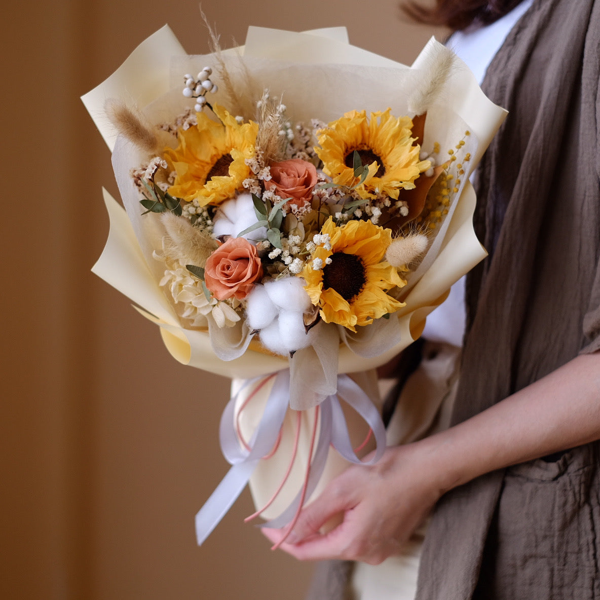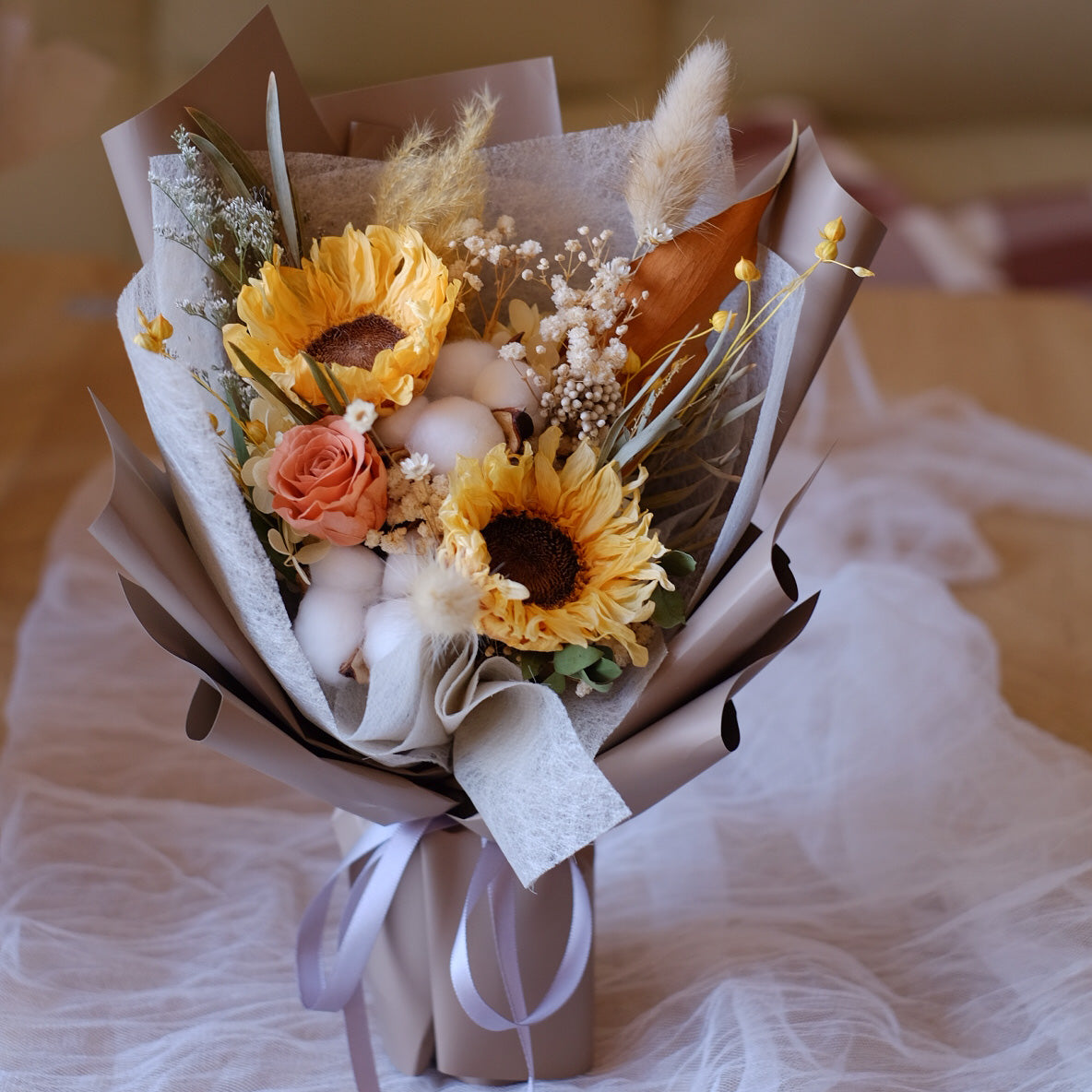 ・保鮮花/乾花放於乾爽通風地方,避免陽光直射,可保存1-2年